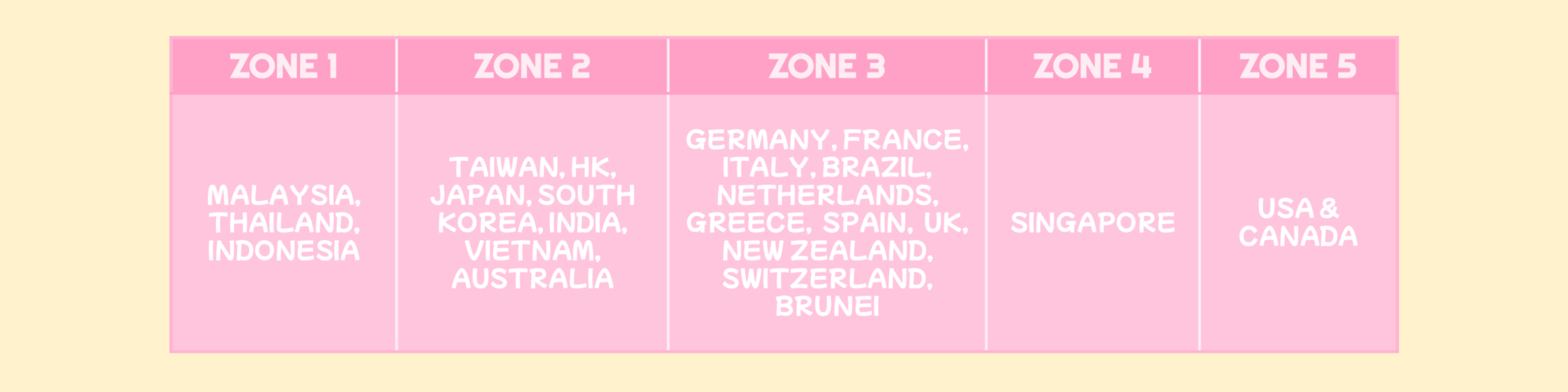 International shipments will be done through MyKartero. Shipments come with free tracking, with an ETA of around 7 to 20 business days. Please note that the fees listed do not include any taxes/additional fees you may need to pay (depending on where you live).